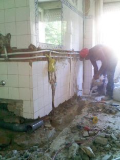 Remoção/Picagem de rebocos deteriorados, aplicação de novo revestimento isolamento e Pintura.
